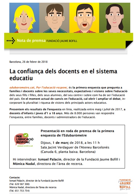 Roda de premsa: La confiança dels docents en el sistema educatiu. Presentació en roda de premsa de la primera enquesta de l’Edubaròmetre