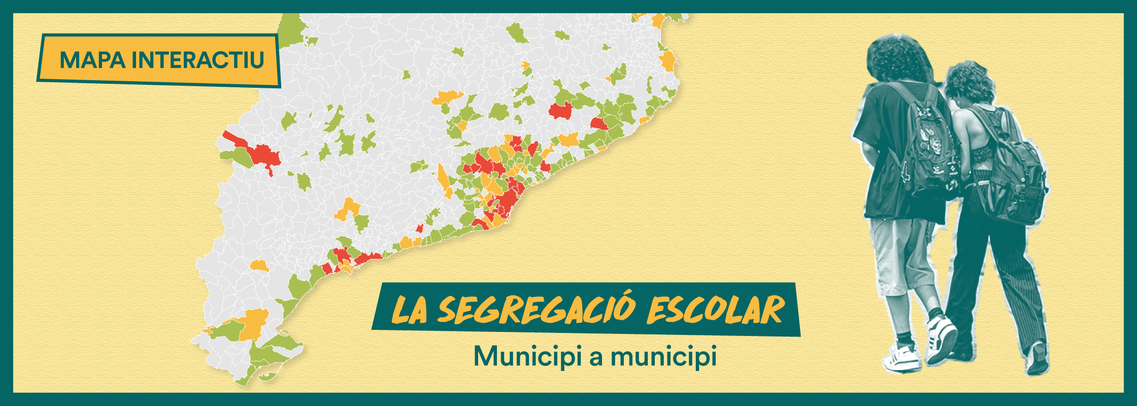 Un mapa que mostra el nivell de segregació escolar a cada municipi de Catalunya, amb dades detallades per veure que encara tenim uns nivells de segregació que no podem tolerar i quines mesures es poden aplicar per millorar (i que molts municipis fa temps que impulsen).