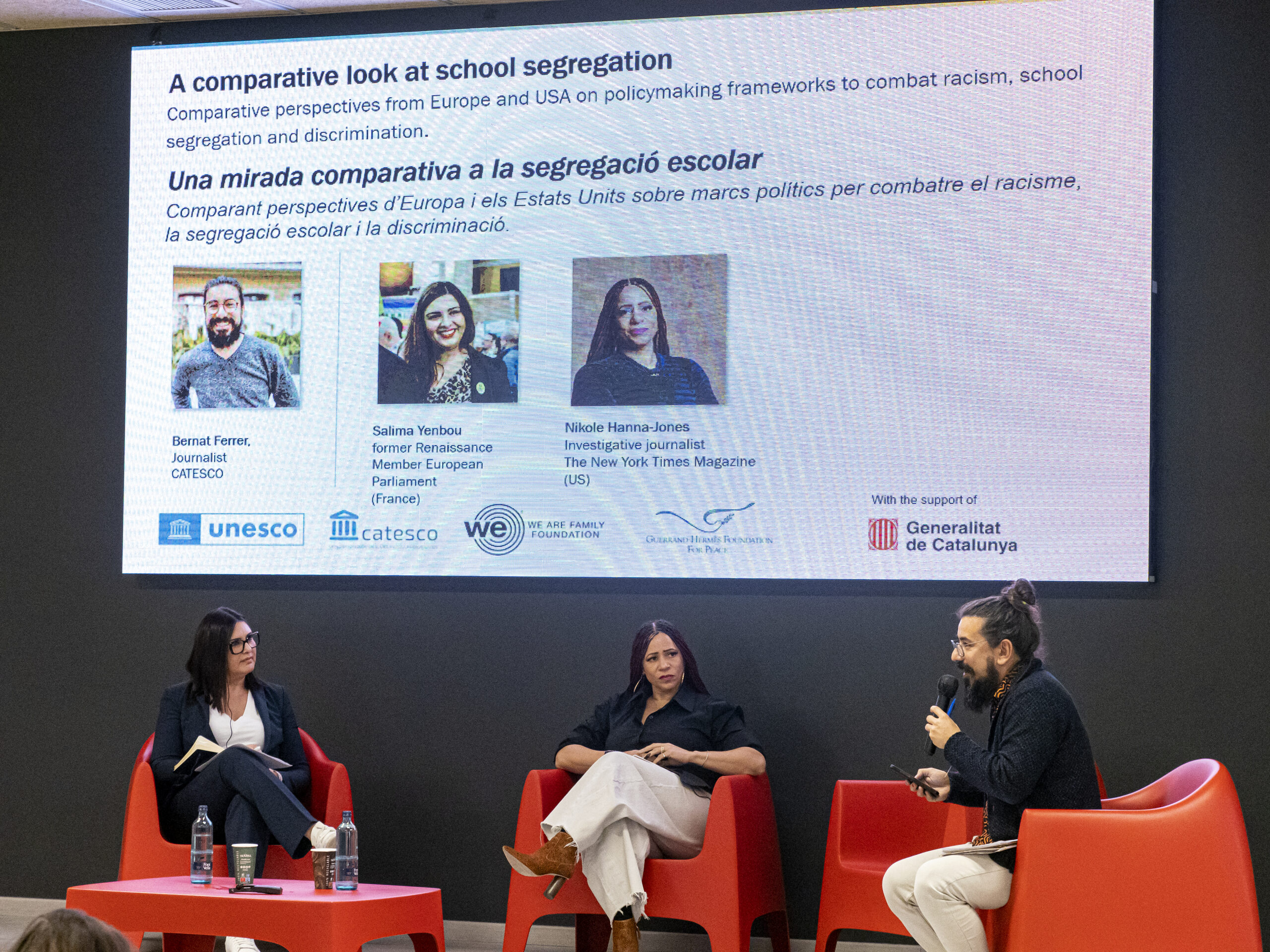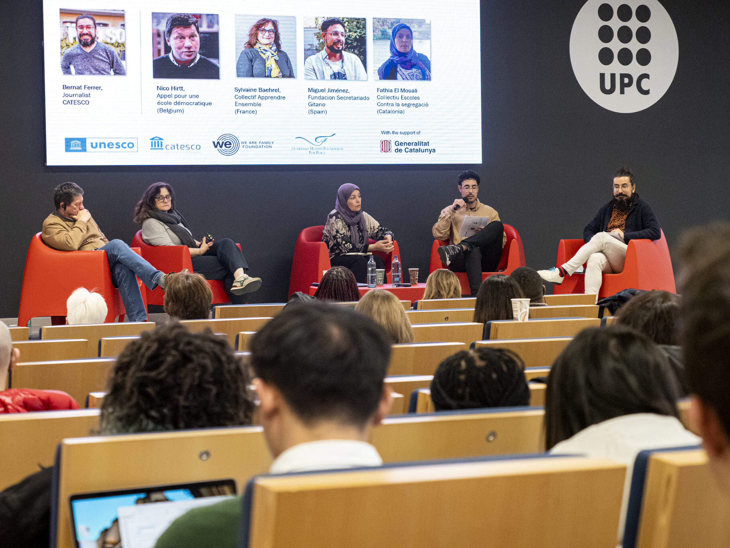 Salima: A França tenim segregació socioeconòmica, ètnica i geogràfica. I sovint totes tres alhora. De fet, les persones que viuen en un barri estan destinades a l'escola d’aquell barri, això va així i és veritat que en general es considera que això no és segregació. Es diu: “aquí hi ha més problemes, per tant posarem recursos addicionals”. Però és que aquests mitjans addicionals contribueixen a l'estigmatització d'aquest centre educatiu. Quan això passa aquesta escola està perduda, perquè tothom ja sap que, si pot, l’ha d’evitar. Ja sé que sembla increïble, però quan diem que en aquesta escola posarem molts més diners i més professors, hi ha molta gent que optarà per enviar els seus fills a un centre on siguin 35 per classe en comptes de fer-ho en aquell. A banda, hi ha una altra particularitat francesa: La Constitució diu que hi ha un principi d’universalisme, que tothom és igual i que per tant no es pot admetre que en l’àmbit educatiu existeixin ni la segregació ni la discriminació.