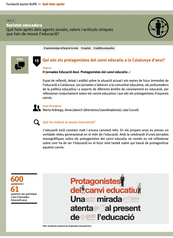 Un espai de referència generador de reflexió, debat i anàlisi sobre la situació actual i els reptes de futur immediat de l’educació a Catalunya