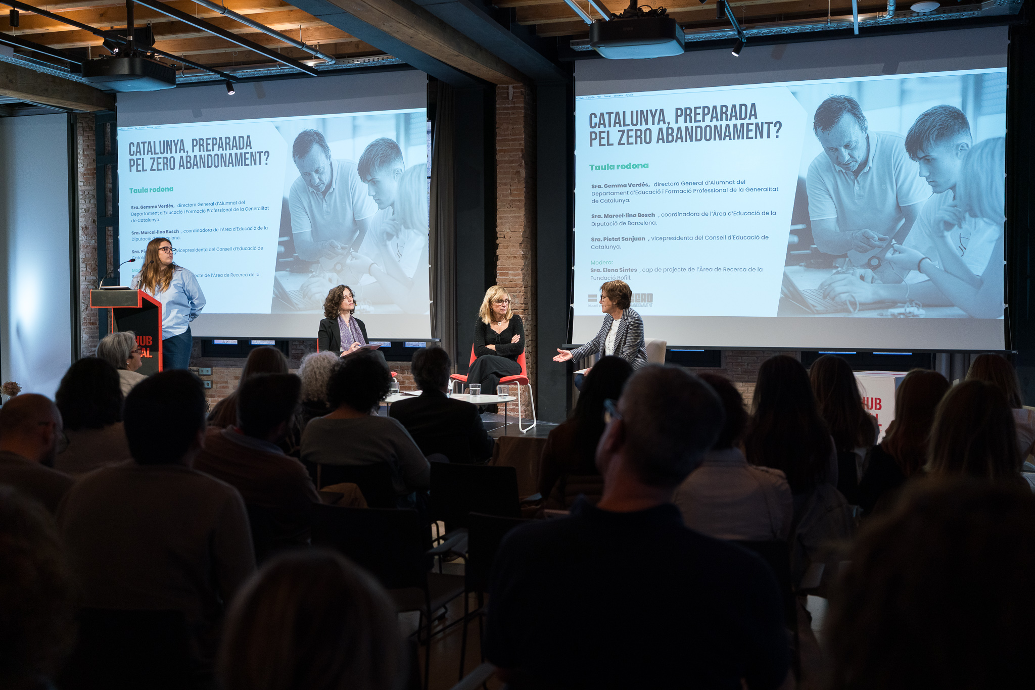 La jornada ha conclòs amb dues taules rodones. Una al voltant de com d'avançada està la lluita contra l’abandonament escolar a Catalunya, que ha comptat amb la directora General d’Alumnat del Departament d’Educació, Gemma Verdès, i la coordinadora de l'Àrea d'Educació de la Diputació de Barcelona, Marcel·lina Bosch, amb la moderació d’Elena Sintes, cap de projecte de l’Àrea de Recerca de la Fundació Bofill.