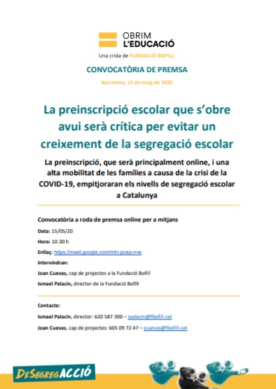 Nota de premsa: La preinscripció serà crítica per evitar un creixement de la segregació escolar