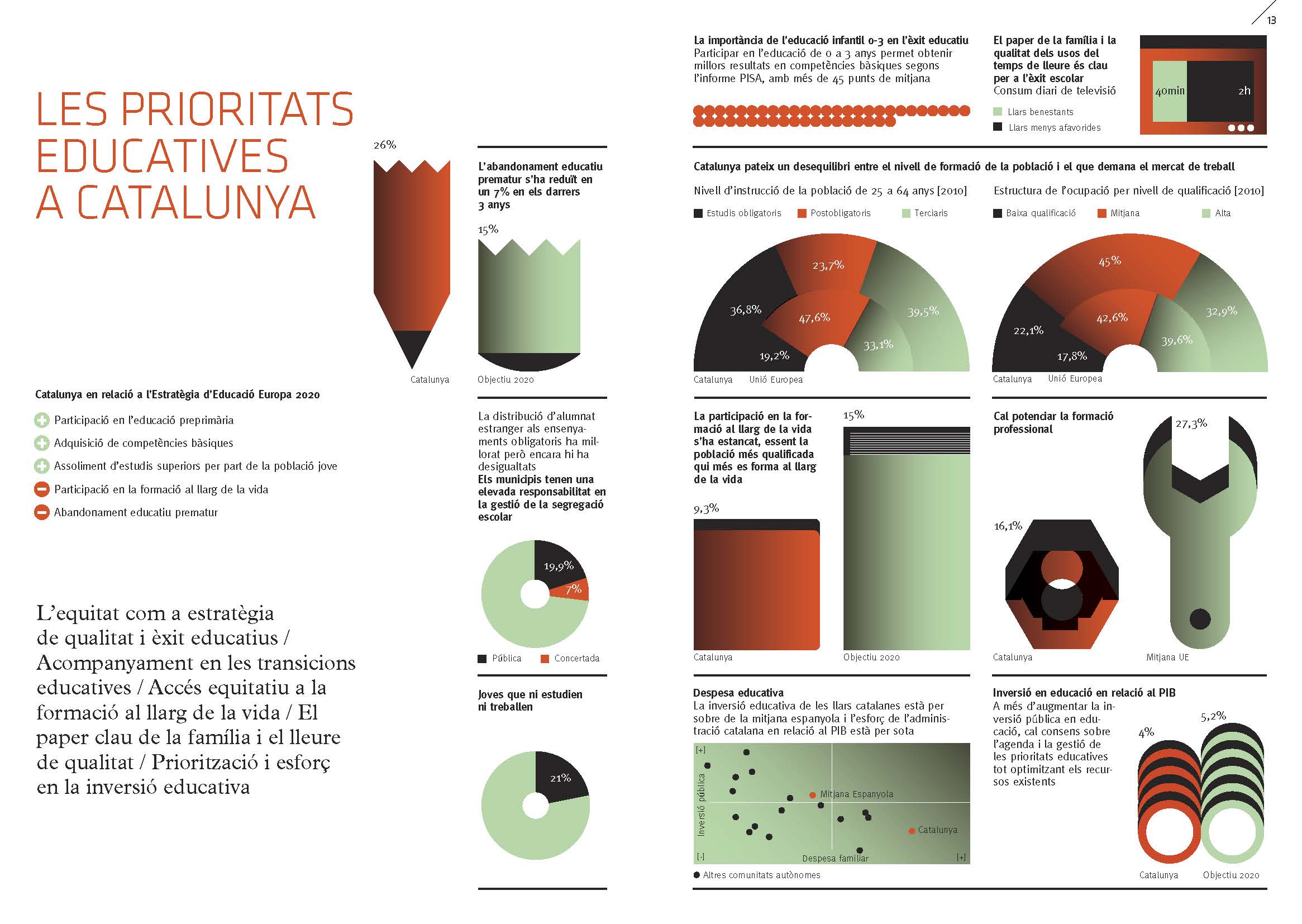 L’equitat com a estratègia de qualitat i èxit educatius / Acompanyament en les transicions educatives / Accés equitatiu a la formació al llarg de la vida / El paper clau de la família i el lleure de qualitat / Priorització i esforç de la inversió educativa